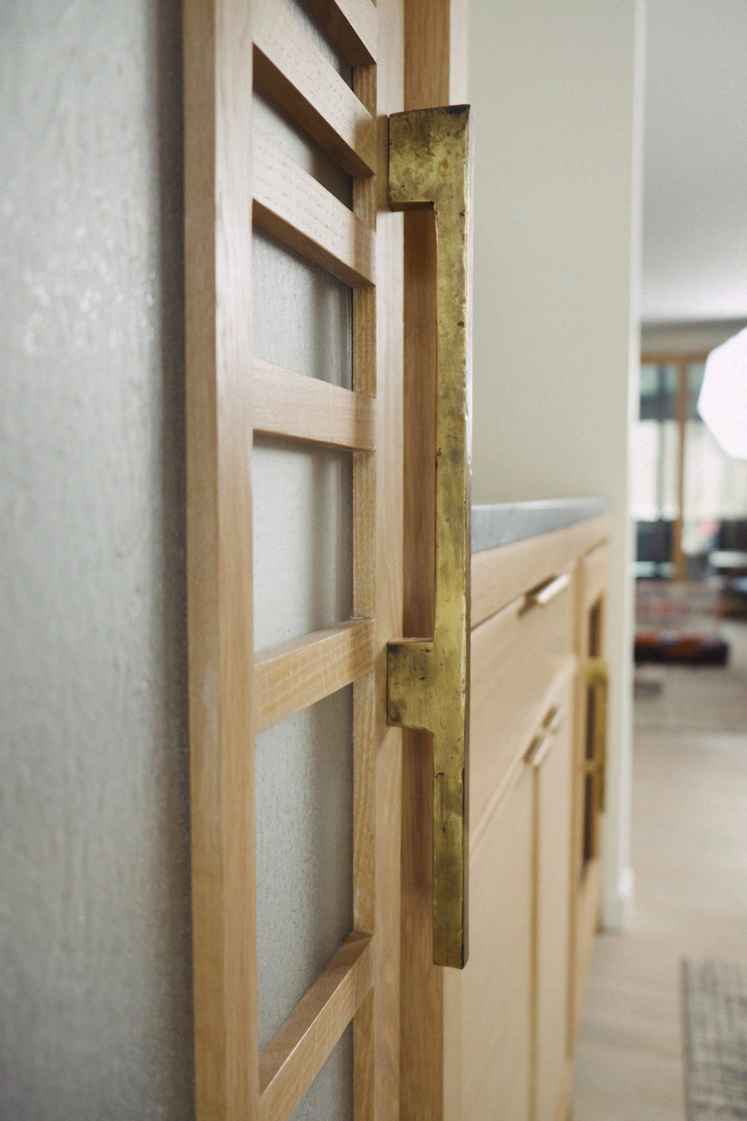 WE CUT, HAMMER, AND FORGE SOLID BRASS IN-HOUSE INTO HANDLES AND HARDWARE TO FIT each piece, as Well as crafting one-off brass hoods and SHELVING